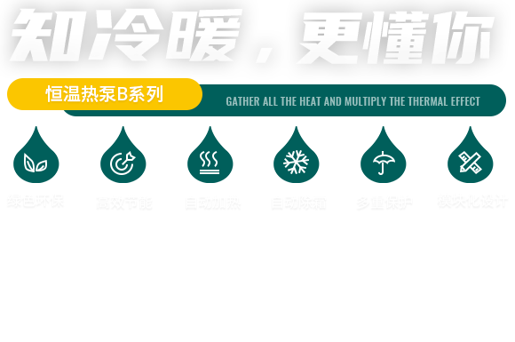 外观优雅、大气,抗老化、耐腐蚀。全天候可靠工作。空气源热泵是一种从低温热源吸取热量,使其在较高温度下转换为可利用能源的高效率的环保节能型产品